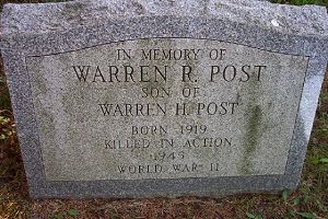 S/Sgt Warren R. Post graduated from North High School in Columbus, Ohio in 1937 and was employed at Militello Macaroni Company.He is remembered at the Ponds Cemetery in Oakland, Bergen County, New Jersey.