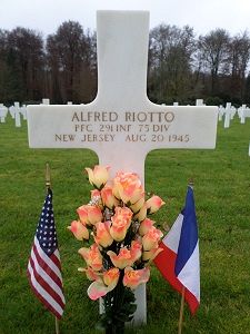 Pfc Alfred Riotto attended Passaic High School for one year and was employed by the D and E Clothing Company.He enlisted in Newark, New Jersey on 16 May 1941 and was he was sent overseas in February 1945.