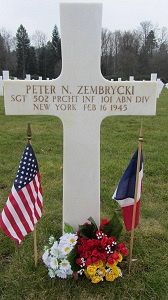 Sgt Peter N. Zembrycki enlisted at Fort Jay Governors Island, New York on 13 May 1942.He had been a member of the First Special Service Force, probably until this unit was disbanded on 5 December 1944, after which the members were transferred to other units.