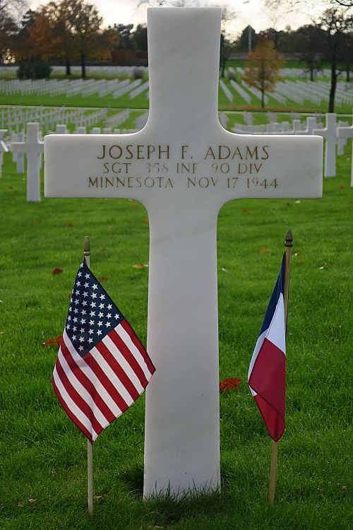 Sgt Joseph F. Adams was employed at the New Richland Produce Company before he entered the Army in March, 1942.He was first buried at the Temporary American Military Cemetery in Limey, France