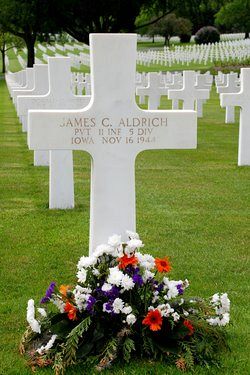 Pvt James C. Aldrich enlisted at Camp Dodge, Iowa on 8 April 1944.He graduated from high school in 1935 and was employed at Montgomery Wards.