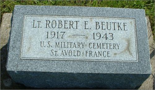 He was taken prisoner and died of his injuries in a hospital in Austria. The entire crew of nine men was killed. Robert E. Beutke and Raymond W. Irwin are buried at Lorraine Cemetery, Fred E. Hoop and James J. Funk are buried at Ardennes Cemetery.