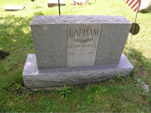 1st Lt Richard L. Lapham is remembered with a memorial marker at Williams Cemetery in LeRoy Township, Lake County, Ohio.