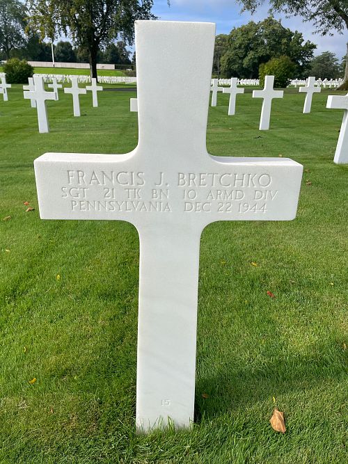 Sgt Francis J. Bretchko enlisted in Wilkes Barre, Pennsylvania on 12 November 1942.He was first buried at the Temporary American Military Cemetery in Limey, France.