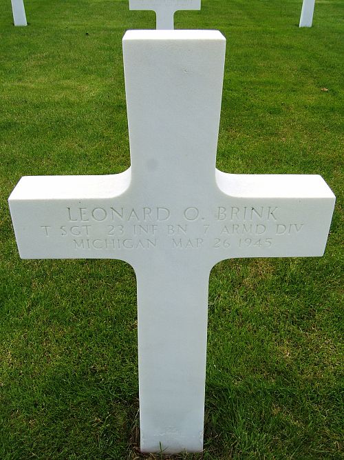 T/Sgt Leonard O. Brink joined the National Guard in Flint, Michigan on 15 October 1940.He was taken prisoner on 22 December 1944. The exact location and circumstances of his death are not known.