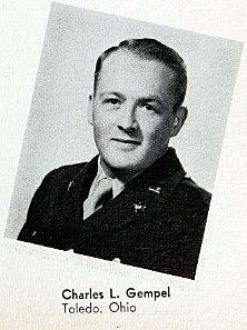 1st Lt Charles L. Gempel was a graduate of Scott High School and employed in the office of the Acklin Stamping Co. before entering the Army Air Forces in February, 1943. He went overseas in June 1944 and was based in England."Immediately after bombing, at 1318 hours, in vicinity of Hamburg, this aircraft went into a very steep bank. Heavy flak was encountered at this time.Aircraft came out of the 90-degree bank and was last observed flying apparently under control on 180-degree heading. Poor visibility, due to high clouds, made further sightings impossible.No chutes were seen." (Wrong aircraft?) Lester Griffin, engineer, said that three men survived: Fuller, Capps, and himself. "We were a radar crew and flew only in bad weather. We were on our 23rd mission. The plane exploded, knocking or blowing me out, and I came down by parachute after regaining consciousness. I am writing this letter from the V.A. Hospital in Gainsville."Further information was not possible as Sgt Griffin died in 1983. Sgt Clint Fuller sent other brief statements, "Bentcliff, Gempel, Fiskum, Barefoot, Celentano, Maschmeyer, Downey and a man of Mexican descent (Garza), went down with the plane. Ralph W. Capps and I bailed out over Hamburg, but I don't know how Lester Griffin managed to get out." We flew into a heavy front while leading the high, right squadron. Soup was so thick that we had to fly on instruments. Someone crossed over in front of us, with the prop wash flipping us over, and the plane spun into the ground from approximately 28,000 feet." On the contrary, our plane did not explode – it hit the deck. Neither was it a radar ship. The radio operator, Maschmeyer, froze, apparently from shock, and would not bail out. I had to climb over him in order to get to the catwalk in the bomb bay. On this mission, I was riding the top turret and that is why I had to fight my way past the radio operator. Both Barefoot and Garza were new to our crew. Barefoot was riding the nose turret in order to complete the final mission of his tour. He was killed.