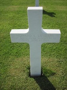 Landahl was seriously wounded and died about an hour after being captured. He was buried at Schermen Community Cemetery.