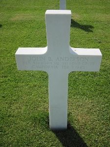 John B. Anderson graduated from Westwood High School.The airplane was hit by flak over the target. #2 engine was on fire and burning badly for about five minutes. The airplane swerved right off target then left and was under control until all the men had bailed out. It then exploded in mid-air.