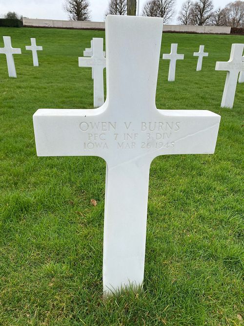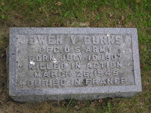 Pfc Owen V. Burns graduated from the Immaculate Conception Academy and was a bookkeeper, employed by the First Security Bank & Trust Company.He enlisted on 11 April 1944, had his basic training at Camp Roberts, California and he arrived in France in October 1944.