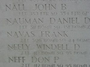 His brother Lt Fred Navas served with the U.S. Navy in the South Pacific and was reported missing in action on 12 October 1944 when his airplane failed to return from a mission to Formosa. He is remembered at the American Military Cemetery of Manila in the Philippines.