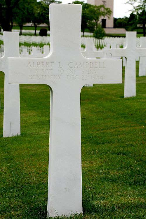 S/Sgt Albert L. Campbell enlisted in Louisville, Kentucky on 31 July 1941. He attended 1 year of high school and was a chauffeur before he enlisted.At the time of his death, the 10th Infantry Regiment was engaged in the fighting in the vicinity of Michelshof, Luxembourg.