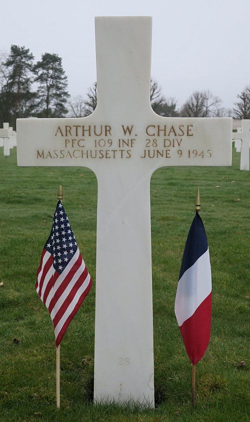 Pfc Arthur W. Chase attended high school for three years before he enlisted at Fort Banks, Boston, Massachusetts on 11 September 1944.Source of information: Peter Schouteten, www.abmc.gov, www.wwiimemorial.com, www.archives.gov - WWII Enlistment Record, www.ancestry.com - Headstone and Interment Record, www.findagrave.com