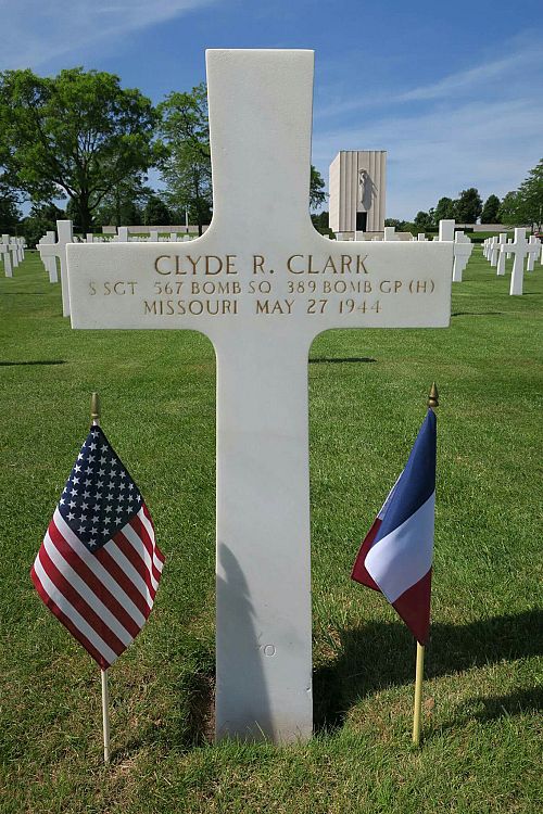 Our B-24 suffered several direct hits, two left engines were knocked out and plane was set on fire. Due to fire and or direct hits S/Sgt C.R. Clark probably did not get out of the plane.