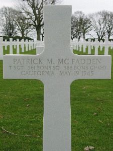 T/Sgt Patrick M. Mc Fadden enlisted in San Francisco, California on 2 April 1943.T/Sgt Mc Fadden was born in Australia and moved to the U.S.A. when he was young. His father was Irish and his mother was Australian. He had an older brother, serving in the U.S. Navy and another brother, Henry, serving in the 379th Bomber Group, Heavy. He was shot down on 10 April 1945 and taken prisoner of war.