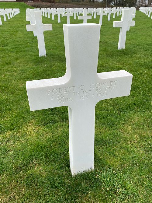 S/Sgt Robert C. Cowles attended high school for four years and was a cement rups helper employed by Harshaw Chemicals before he enlisted in Cleveland, Ohio on 9 July 1942.He was reported wounded in action in September 1944 in France for which he was awarded the Purple Heart Medal a first time.