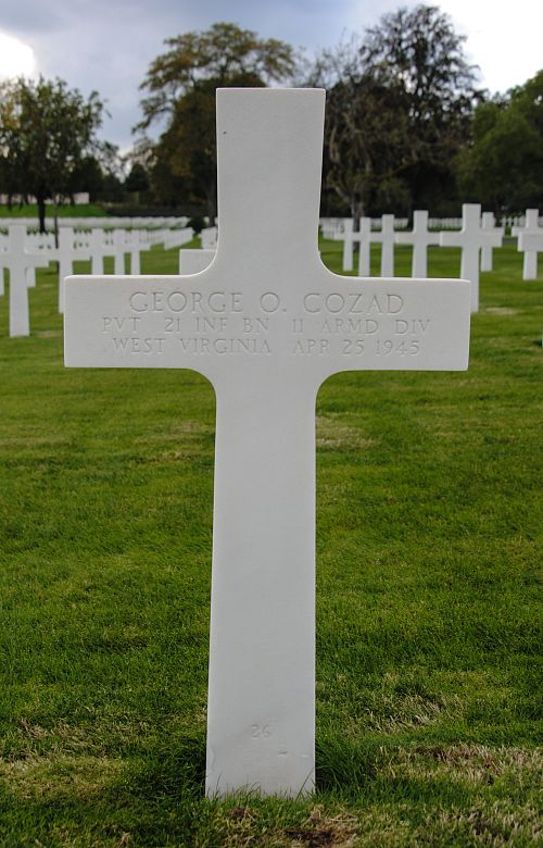 Pvt George O. Cozad enlisted in Huntington, West Virginia on 16 September 1944.Source of information: André Koch, www.abmc.gov, www.wwiimemorial.com, www.archives.gov - WWII Enlistment Record, www.ancestry.com - 1930/1940 Census / Headstone and Interment Record / U.S. WWII Draft Cards Young Men, http://www.11tharmoreddivision.com