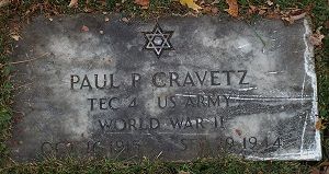 T/4 Paul P. Cravetz enlisted in Syracuse, New York on 18 May 1941.His initial burial took place on Saint James Permanent Cemetery, Saint James, France.