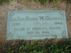 1st Sgt Benny W. Croswell enlisted at Ft Thomas Newport, Kentucky on 29 March 1941.His initial burial took place on Limey Cemetery, Toul, France.