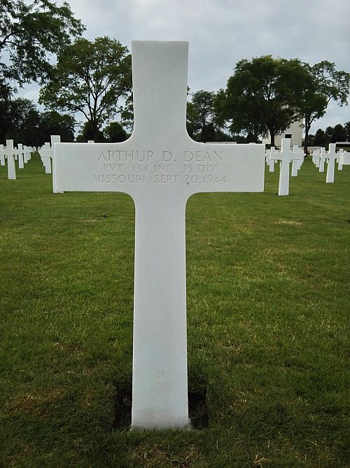 Pvt Arthur D. Dean attended high school for four years and worked on a farm before he enlisted at Jefferson Barracks, Missouri on 10 December 1943.He was killed by artillery shell fragments in his leg.