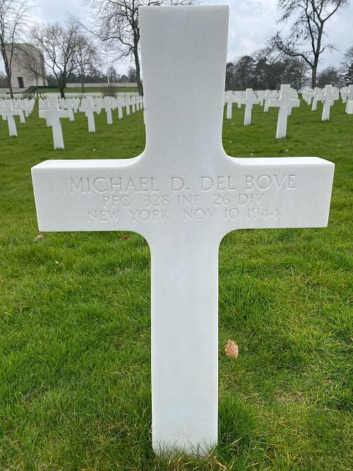 Pfc Michael D. Del Bove attended college for two years before he joined the U.S. Army Reserve in Syracuse, New York on 5 December 1942.He was first buried at the Temporary American Military Cemetery in Limey, France.