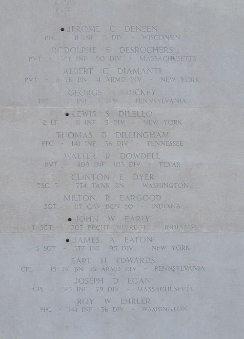 Pfc Dickey was reported killed in action but his remains, together with those of Lt Hillyard, were left exposed to intense shell fire for approximately three days. It is believed that both men were interred by the enemy in the approximate location of where they were killed.