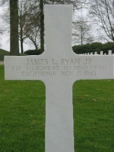 That the Navigator, Lt. Ryan, was dead to the best of his knowledge. He noted that Lt. Ryan was last seen on the flight deck just after the ship was hit by flak, and then returned to the nose position to retrieve his parachute and that was the last he saw of the Navigator. He and the Co-Pilot did not try egress until they were assured all other crewmen had bailed out. Later, Pilot Harris was informed by the Germans when he was captured that one of the crews members had been killed and Lt. Ryan was unaccounted for by the other members. The men had been fired upon by small arms fire during their parachute descents and possibly Lt. Ryan had suffered fatal wounds. The Flight Engineer's report was more specific from his interview about Lt. Ryan's fate in that he stated that the Bombardier, Lt. Kerns, later noted that Lt. Ryan was last seen by him at the bomb bay doors ready to jump, but perhaps felt there was not enough altitude left to do so. This report went on to state that the German captors had informed them later that a crushed body had been found under the ship's remains - and this casualty was Lt. Ryan. As a concluding and clarifying point, the Co-Pilot's account, that of Lt. Kearns, noted that there was insufficient altitude for him and the Pilot, Lt. Harris, to bail out safely after the abandon ship order was given beginning around 8,000 feet. He also last saw Lt. Ryan, the Navigator, on the bomb bay catwalk with chute on and preparing to bail out. In view of the very low altitude by then, the Pilot and Co-Pilot settled back into their crew positions and successfully crash-landed the airplane. The Co-Pilot as well felt that Lt. Ryan may have been hit by small arms fire somehow in that the ship was under heavy enemy fire from around 3,000 feet down to 1,500 feet. The surviving crew was only free for a very few minutes before capture and were taken to the German guard house in Rotterdam before being transported by rail the next morning to Amsterdam where the captors confirmed Lt. Ryan's death.Initial burial of Lt. Ryan by the Germans was made at the Rotterdam-Crooswijk cemetery in the sector for enemy forces, Row 1, #121.