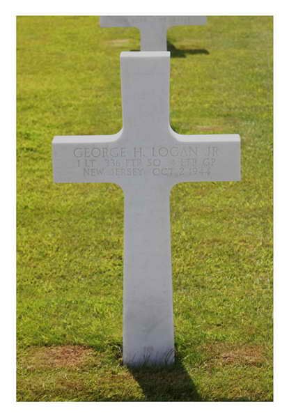 2nd Lt. Franklin W. Young stated:"I was flying #3 to Lt George H. Logan Jr, and we were at 23,000 feet on our way home from escorting bombers that bombed Hamm, Germany. I noticed he was flying very funny. This lasted about a minute when he pulled up very steep, and the aircraft did a half-roll and went straight down, doing a slow aileron roll. I did a spiral around him, reaching a speed of about 500. The last I saw of him, he went down through the clouds that were about 5,000 feet. I went down through the clouds to see where he crashed, but I could not see any smoke. This took place southeast of the Zuider Zee between Apeldoorn and Zwolle. As he was going down, I called him three times and asked if he was ok, but received no answer."