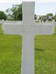 Pvt Dale Bonham was first buried at the Temporary American Military Cemetery of Fosse, Belgium.