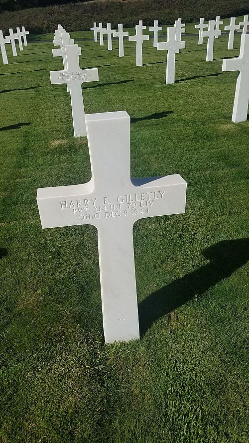 Pvt Gilletly was first buried at the Temporary American Military Cemetery in Hochfelden, France.