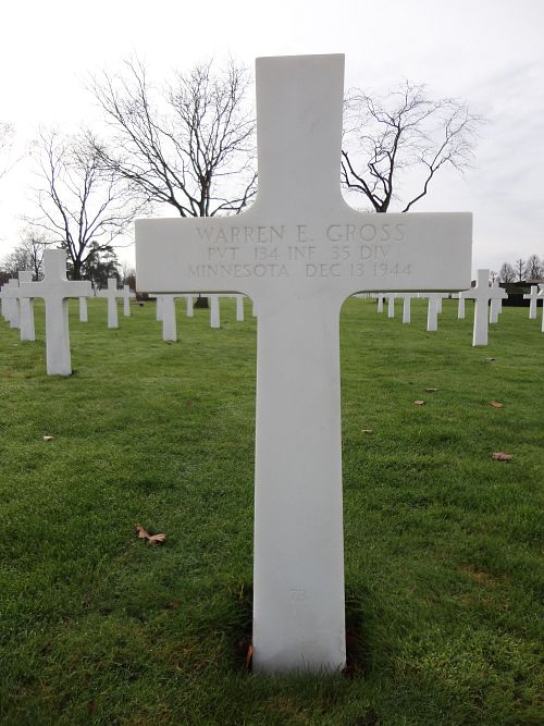Pvt Warren E. Gross was employed at the Soo Line Railroad before he enlisted.Source of information: Peter Schouteten, Kathy McDermott, www.abmc.gov, www.wwiimemorial.com, www.ancestry.com - Headstone and Interment Record / U.S. WWII Draft Cards Young Men, After Action Report 35th Infantry Division, www.findagrave.com - MAJ Jimmy Cotton