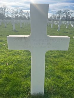 1st Lt Warren M. Halverson was a candy salesman.Source of information: Leo Minne, www.abmc.gov, www.wwiimemorial.com, www.ancestry.com – 1930/1940 Census / U.S. Headstone and Interment Record for U.S. Military Cemeteries on Foreign Soil / U.S. Draft Cards Young Men / US WW2 Hospital Admission Cards / Roy Wilson Family Tree