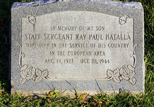 S/Sgt Ray P. Hatalla was officially declared dead one year and one day after he was reported missing in action. At that time his unit was fighting in the vicinity of Nancy, France.He is remembered at the Berlin Cemetery in Berlin, Sangamon County, Illinois.
