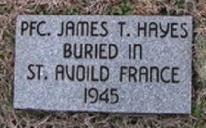 Pfc James T. Hayes worked on a farm before he enlisted in Fort Oglethorpe, Georgia, on 17 August 1943.He is remembered at the Thorngrove Cemetery in Thorn Grove, Knox County, Tennessee.