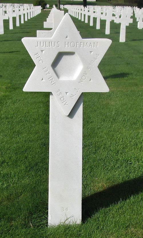 Pfc Julius Hoffman was a manager at Rosengard and Ginsburg and an official before enlisted in Camden, New Jersey on 4 September 1943.He was killed by small arms fire.