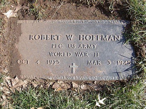 Pfc Robert W. Hoffman attended Englewood High School before he enlisted in Newark, New Jersey on 1 December 1943.He was officially declared dead one year and one day after he was reported missing in action. At that time his unit was fighting in the vicinity of Hartungshof, Germany.