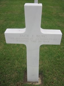 According to a grave report of Feldgendarmerie Trupp a (mot) 648 of te 3 Fallschirmjäger Division, Jack J. Burg was taken prisoner and died during an American artillery shelling of Valender. He was initially buried at the army cemetery of this village next to the church.