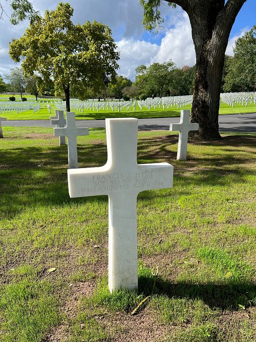 Sgt Francis J. Hyde graduated from Rosary High School in 1938 and was a draftsman before he joined the National Guard in Holyoke, Massachusetts on 16 January 1941.He was killed by small arms fire in his neck.