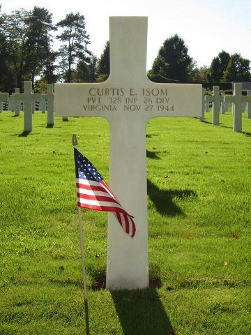 Pvt Curtis E. Isom attended high school for four years and was a foreman before he enlisted at Fort George G. Meade, Maryland on 6 May 1944.He was sent overseas in October 1944.
