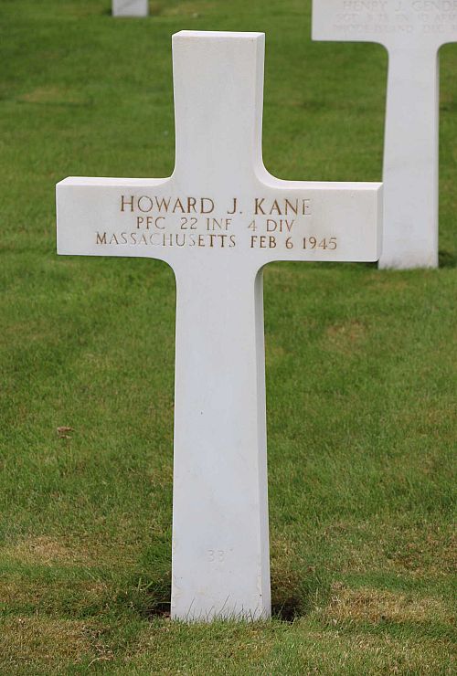 Pfc Howard J. Kane was a subway motorman before he enlisted at Fort Devens, Massachusetts on 6 May 1944.Source of information: Peter Schouteten, Company’s / 4ID After Action Reports, www.abmc.gov, www.wwiimemorial.com, www.archives.gov – WWII Enlistment Record, www.ancestry.com - Headstone and Interment Record / Jordan Family Tree / 1930 Census, www.findagrave.com – Melissa Parmenter