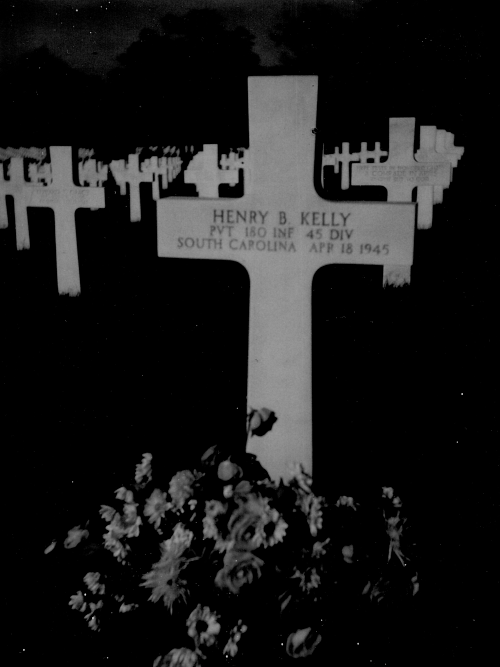 Pvt Henry B. Kelly was a welder before he enlisted at Fort Bragg, North Carolina on 1 July 1944.Source of information: Peter Schouteten, www.abmc.gov, www.wwiimemorial.com, www.archives.gov – WWII Enlistment Record, www.ancestry.com - Headstone and Interment Record / Kelly Pearson Family Tree / 1930 Census, http://www.45thdivision.org