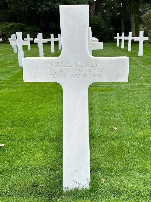 T/4 Cecil C. Key attended high school for 1 year and worked on a farm before he enlisted at Fort Bliss, El Paso, Texas on 12 March 1941.Source of information: Peter Schouteten, Dannny van der Groen - Company's / 4ID After Action Reports, www.abmc.gov, www.wwiimemorial.com, www.archives.gov - WWII Enlistment Record, www.ancestry.com - Headstone and Interment Record / U.S. WWII Draft Cards Young Men / 1920/1940 Census