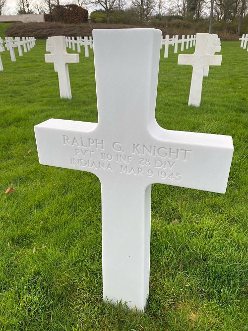 Pvt Ralph G. Knight attended high school for two years and was employed by the Pennsylvania Railroad before he enlisted in Indianapolis, Indiana on 7 October 1943.He was taken prisoner on 20 December 1944 and died in Stalag IX-B.