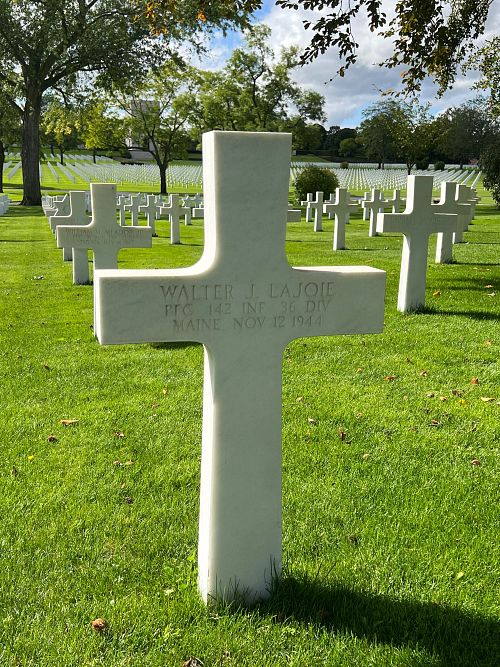Pfc Walter J. Lajoie enlisted in Portland, Maine on 30 March 1943.Source of information: André Koch, www.abmc.gov, www.wwiimemorial.com, www.archives.gov – WWII Enlistment Record, www.ancestry.com - 1930/1940 Census / Headstone and Interment Records / U.S. WWII Draft Cards Young Men, 142ndaar-.pdf, https://36th-id.frb.io/