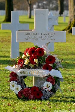 Pvt Michael Lamuro was employed at the Brite Light Reflection Company before he enlisted in Pine Beach, New Jersey on 30 April 1943.He was killed by small arms fire in his back.