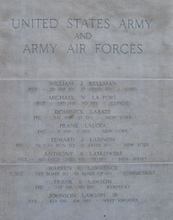Source of information: Leo Minne, www.abmc.gov, www.wwiimemorial.com, www.ancestry.com – 1940 Census / Headstone and Interment Record / U.S Draft Cards Young Men, www.indianamilitary.org/106ID/SoThinkMenu/106thSTART