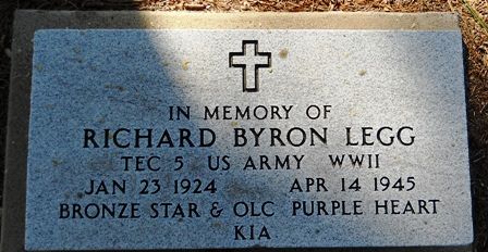 T/5 Richard B. Legg attended high school for two years before he enlisted in Houston, Texas on 22 February 1943.He is remembered at the Cedarvale Bay City Cemetery in Bay City, Matagorda County, Texas.