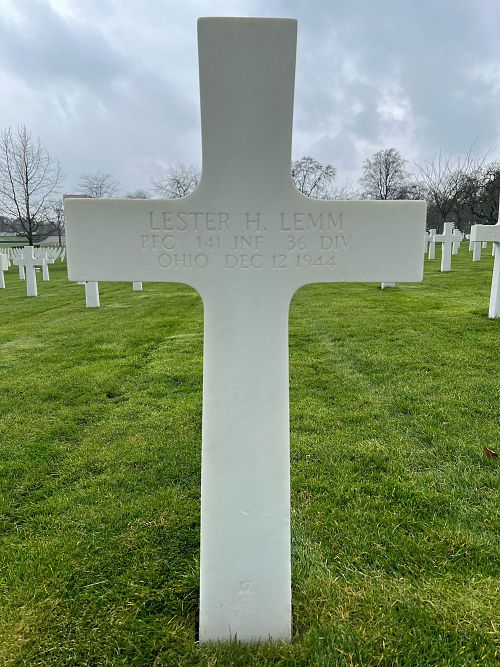 Pfc Lester H. Lemm enlisted in Cleveland, Ohio on 4 June 1941.Source of information: André Koch, www.abmc.gov, www.wwiimemorial.com, www.archives.gov – WWII Enlistment Record, www.ancestry.com - 1920/1930 Census / Headstone and Interment Records / U.S. WWII Draft Cards Young Men, https://36th-id.frb.io, 141aar-December-1944-to-end.pdf