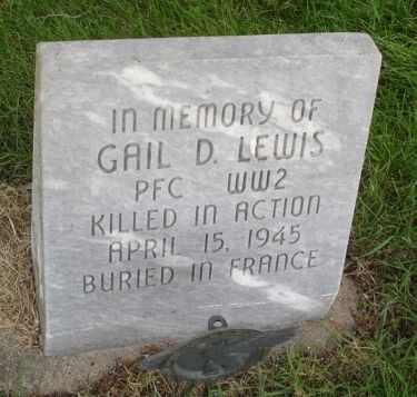 Pfc Gail D. Lewis enlisted in Sacramento, California, on 22 March 1941.He is remembered at the Dawson Cemetery in Dawson, Dallas County, Iowa.