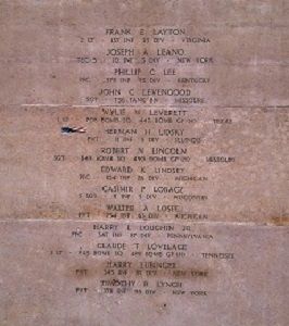 Later the order to abandon the bridgehead was given and the sergeant once again entered Pvt Lidsky’s foxhole and discovered he had been dead for several hours. As there was neither time nor facilities to recover the dead, Pvt Lidsky and all others who were killed were left in the places where they died. The Germans took control of the area and it was not known what disposition they made of the remains.