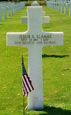 Sgt Jesus S. Llamas attended the University of New Mexico before he enlisted at Ft. Bliss, El Paso Texas on 8 August 1942.He served one year in the Aleutians in an Army Air Force outfit. He returned to the U.S. and then transferred to the infantry and was sent overseas in December 1944.